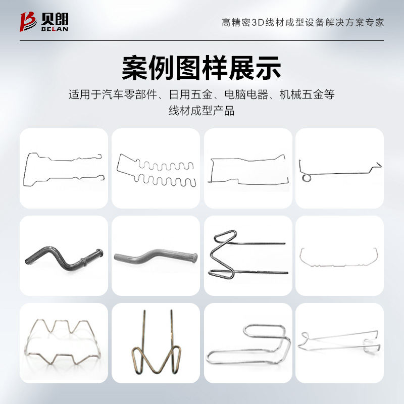 產(chǎn)品特點:適用于生產(chǎn)汽車零部件、日用五金、電腦電器、機(jī)械五金等線材成型產(chǎn)品,從產(chǎn)品結(jié)構(gòu)上來講更適合生產(chǎn)框架類的產(chǎn)品,平板支撐更穩(wěn)定;設(shè)備帶有折彎、平移功能,能夠成型大部分高難度3D產(chǎn)品,可切換多種不同R角。