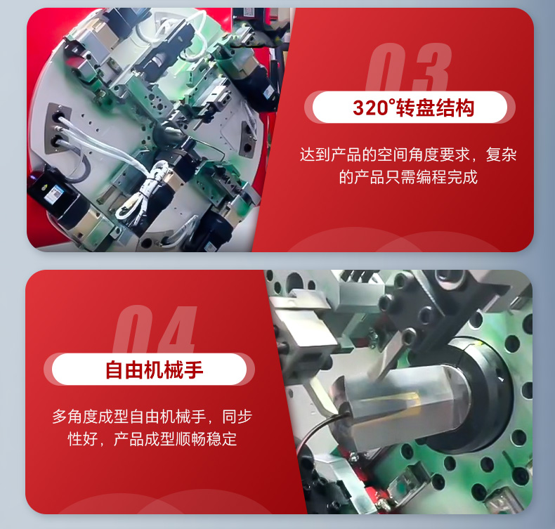 6、轉(zhuǎn)盤可以320°任意轉(zhuǎn)動(dòng),達(dá)到產(chǎn)品的空間角度要求,復(fù)雜的產(chǎn)品只需程序編程完成。
